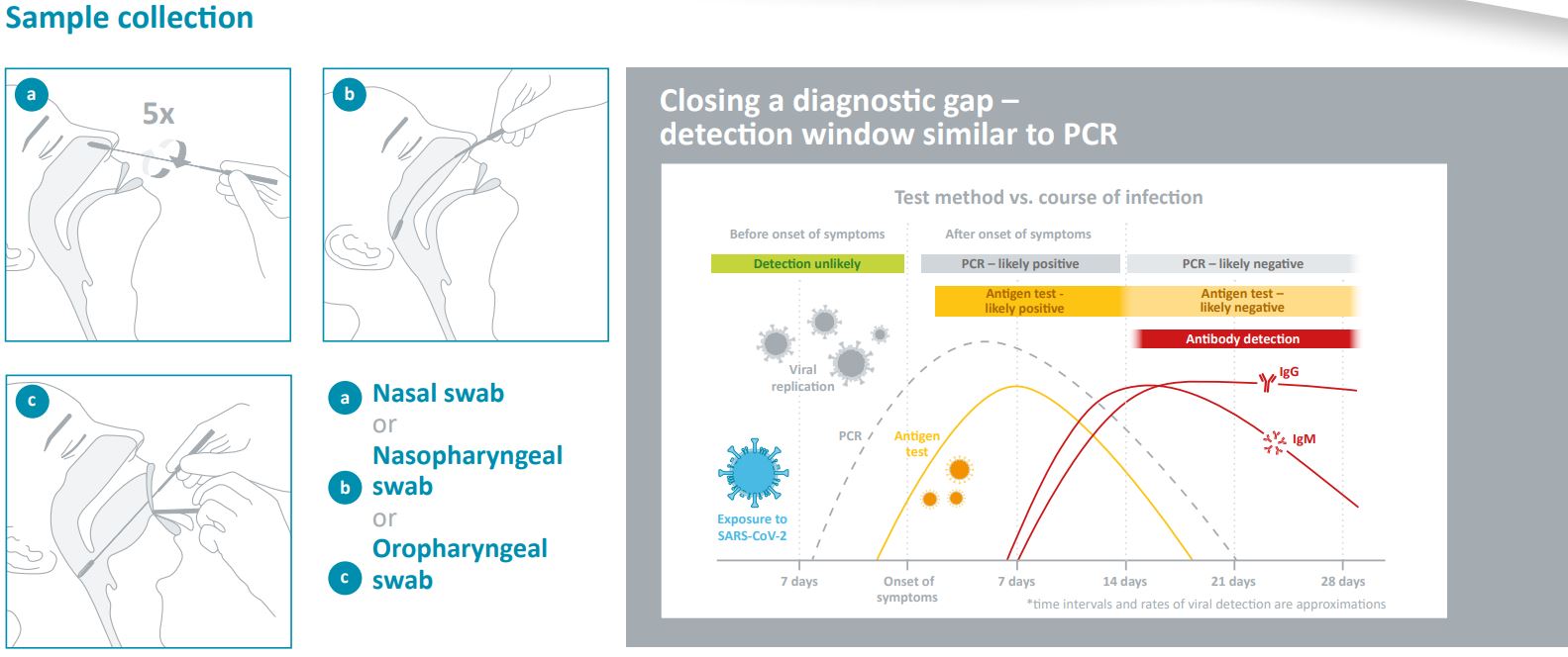 COVID-19 NADAL® IgG/IgM Rapid Test* påviser viruset indirekte. COVID-19 NADAL® Ag Rapid Test påviser det derimot direkte ved å se på tilstedeværelsen av spesifikke proteiner fra SARS-CoV-2-viruset. Antigendeteksjon tetter dermed et diagnostisk gap.