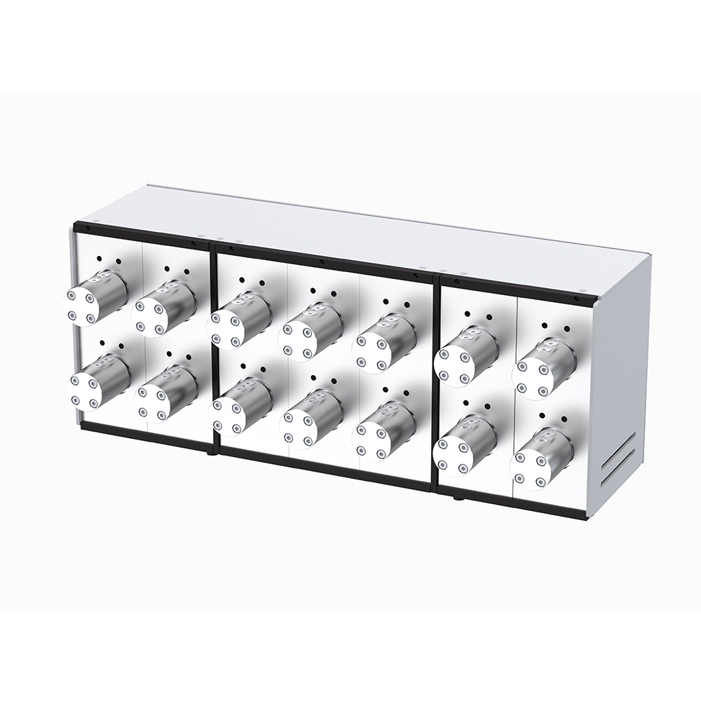 • Flerkanalspumper av typen MDP/MPC kan utstyres med opptil 14 pumpemoduler og konfigureres i henhold til kundens spesifikasjoner. Alle pumpestyringene er koblet til via RS485-grensesnittet og har sin egen slaveadresse. Den frie konfigurasjonen gjør det mulig med individuell drift av hver pumpe samt samtidig styring av alle pumper via en global slaveadresse. Et RS232-grensesnitt muliggjør komfortabel styring via PC.