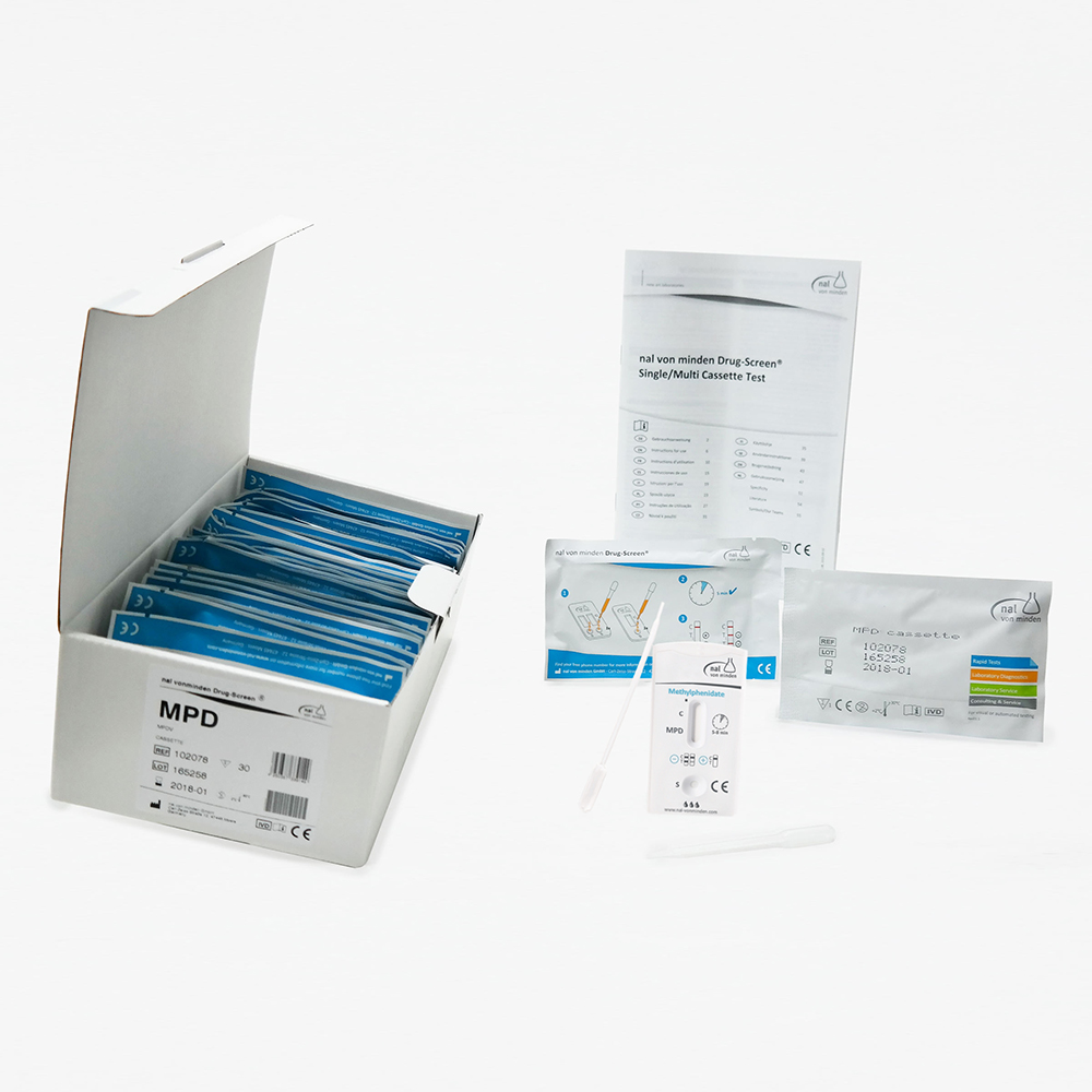 nal von minden Drug-Screen® Methylphenidate (MPD) Rapid Test er en konkurransedyktig immunoassay for kvalitativ påvisning av metylfenidat i human urin, med en cut-off på 150 ng/mL. Metylfenidat-hurtigtesten kan brukes som et hjelpemiddel ved igangsetting eller overvåking av terapeutiske tiltak. Som et in vitro-diagnostisk verktøy for profesjonell bruk gir testen et visuelt, foreløpig analyseresultat.