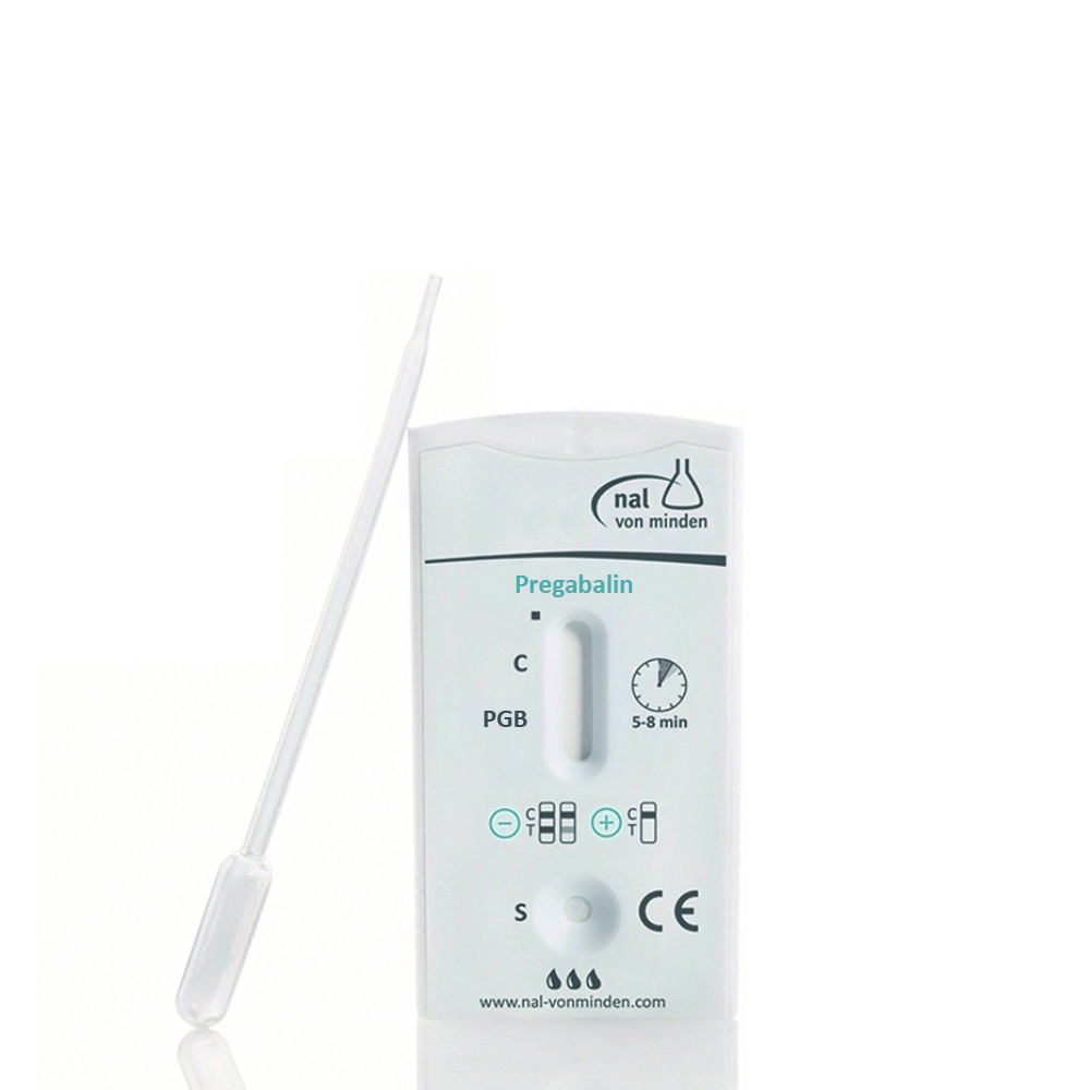 nal von minden Drug-Screen® Pregabalin (PGB) Rapid Test er en kompetitiv immunoassay for kvalitativ påvisning av pregabalin i human urin, med en cut-off på 500 ng/mL. Den kan brukes som et hjelpemiddel ved igangsetting eller overvåking av terapeutiske tiltak. Som et in vitro-diagnostisk verktøy for profesjonell bruk gir testen et visuelt, foreløpig analyseresultat.