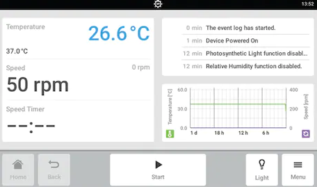 › Multi step programming/cycling – Parameters include shaking speed, temperature, time and (optional) photosynthetic light intensity