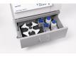 - Oppbevaringsskapet med en lukket sentrifuge på toppen, passer under et standard 90 cm laboratoriebord