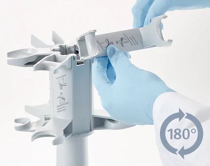 • Rotatable holder with completely new design for all manual pipettes including Eppendorf Research®, Research® plus, Reference®, Reference® 2 and Biomaster®