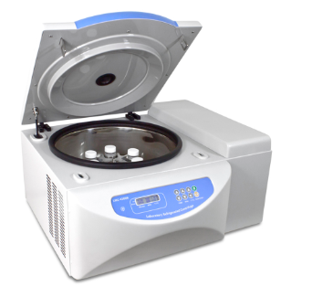 Benksentrifuge med kjøling og temperaturområde fra -10 °C til +25 °C. Utskiftbare rotorer for bruk av sentrifugerør (10 til 15 ml eller 50 ml) eller mikroplater.