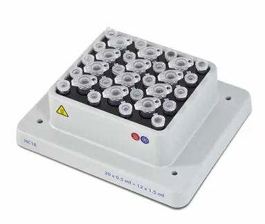 | HC18 | Utskiftbar blokk for: 20 x 0,5 ml mikrorør pluss 12 x 1,5 ml mikrorør |