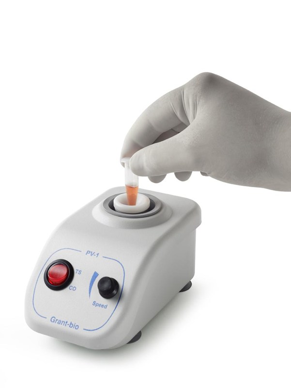 Med variabel hastighet fra 750 til 3000 o/min kan PV-1 brukes til skånsom til kraftig blanding og resuspensjon av pellets i 0,5 ml, 1,5 ml og 15 ml rør.