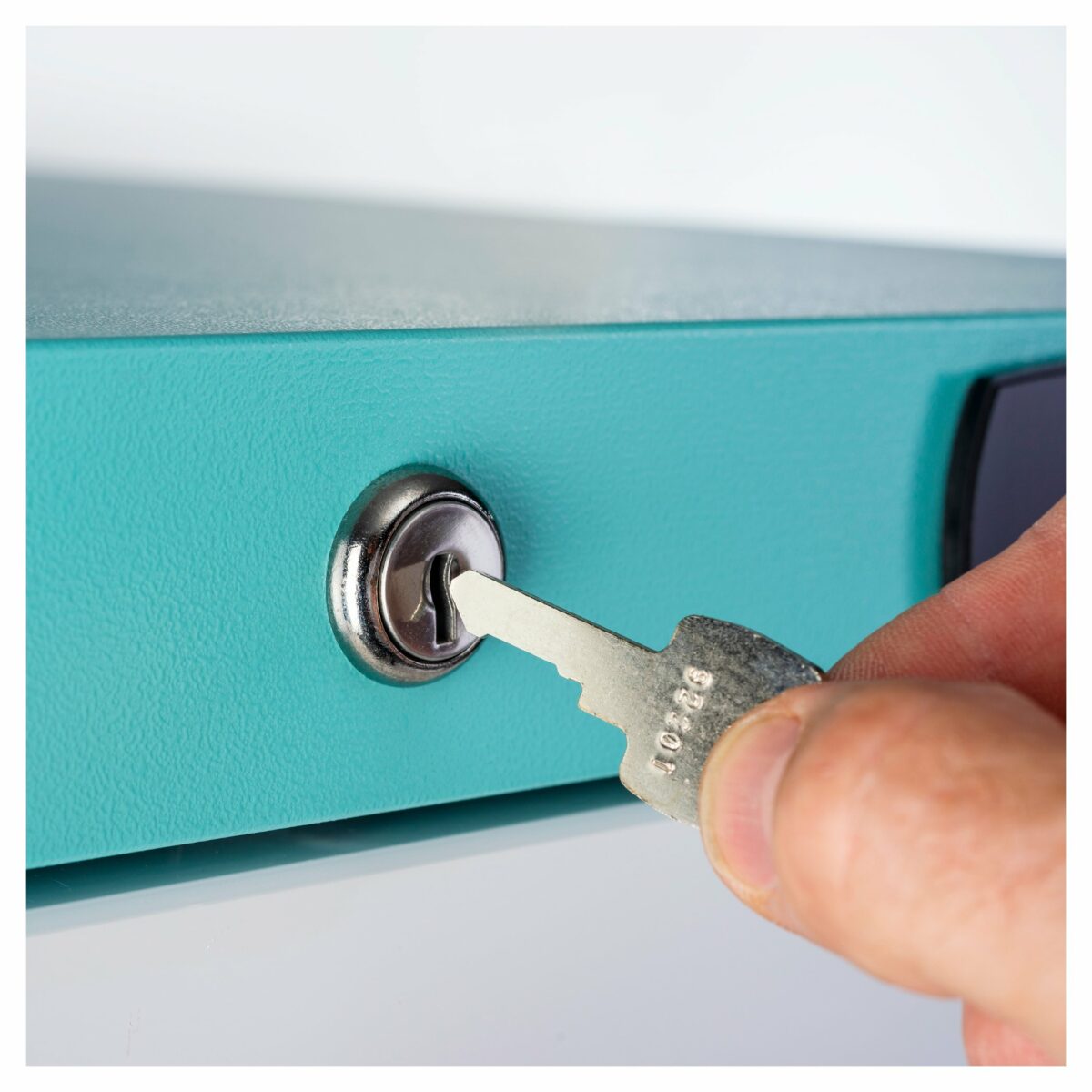 • Integrert lås – Leveres med 2 nøkler for ekstra sikkerhet og tilgangskontroll for å holde innholdet trygt