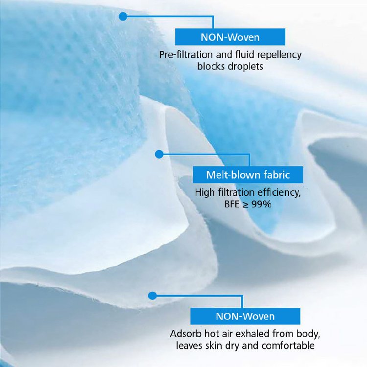 Medisinske/kirurgiske øreklokker til engangsbruk av høyeste kvalitet, produsert i EU. Hudvennlig materiale, elastiske ørekroker og justerbar nesebøyle for perfekt passform og tetthet. Bakteriefiltreringseffektivitet på over 99,8 %, og svært høy sprut- og væskebestandighet.