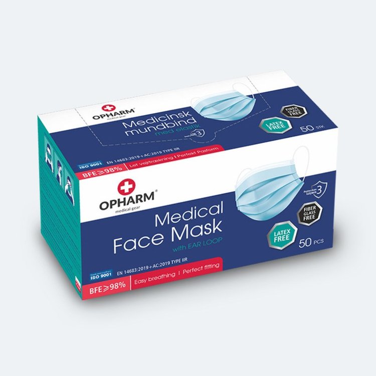 Munnbeskytter type IIR blå 50 stk – Opharm