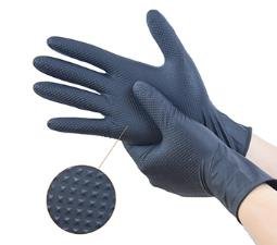 Amabilia Safes nitrilhansker med diamantstrukturert overflate er ideelle for en rekke bransjer, inkludert næringsmiddel-, produksjons- og kjemikaliehåndtering. Også tilgjengelig i oransje.