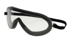 Brille for kontroll av smittsomme sykdommer. En komplett beskyttelsesbrille med skumpute og elastisk stroppfeste.