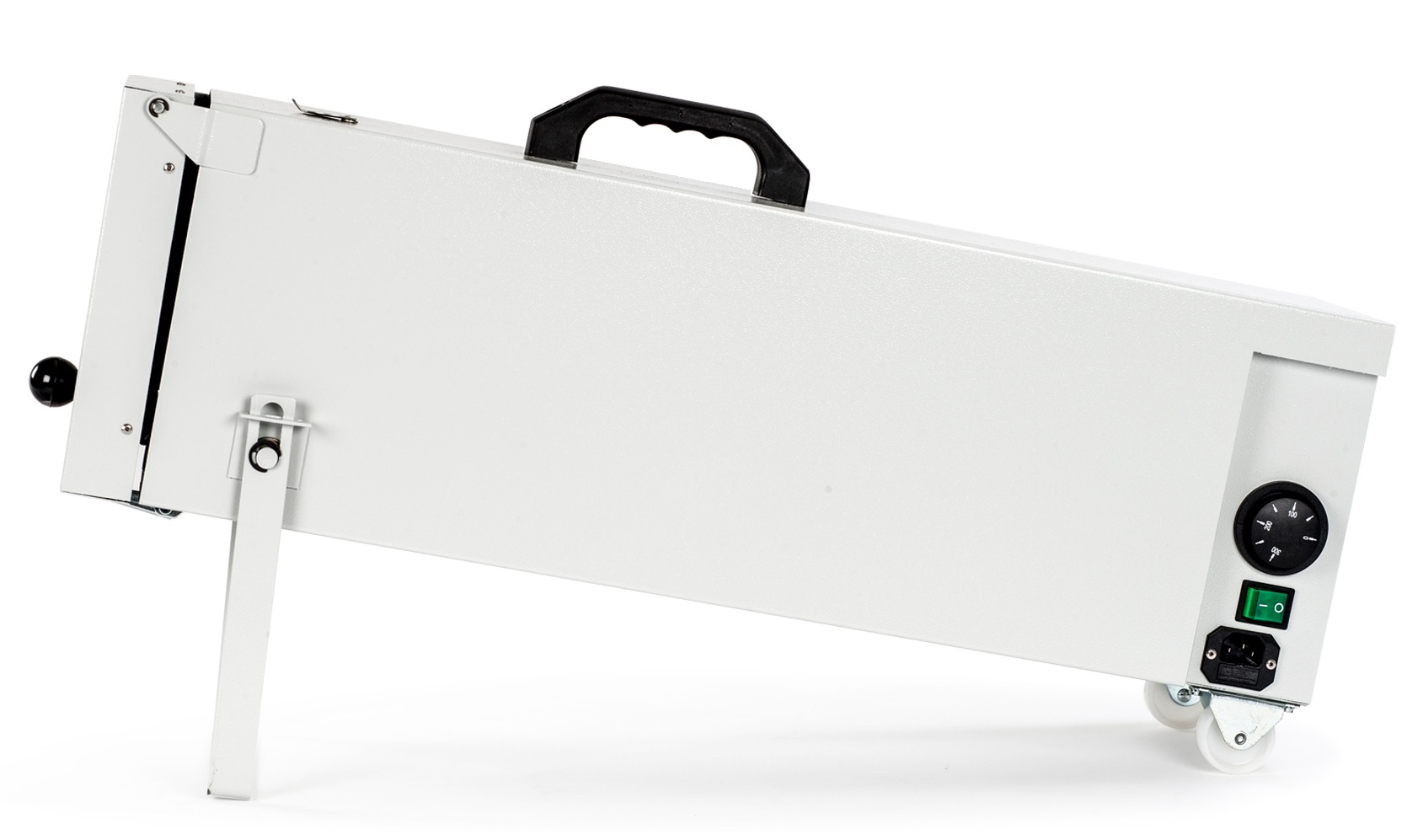 - Hjul og håndtak gjør det enklere å flytte den elektriske ovnen og plassere den på riktig sted i arbeidsområdet;
