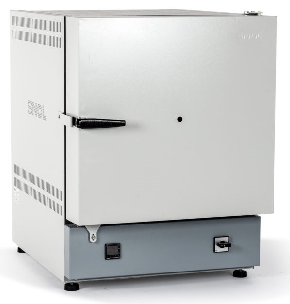 SNOL 30/1100 askeovn med et kammer laget av varmeisolerende fiberplater er designet for aske- og avbrenningsprosesser opp til 1100 °C. Den vifteassisterte skorsteinen gjør det mulig å fjerne røyk fra kammeret under prosessen.