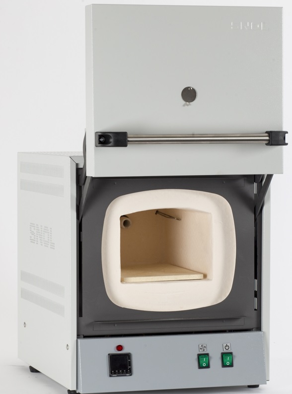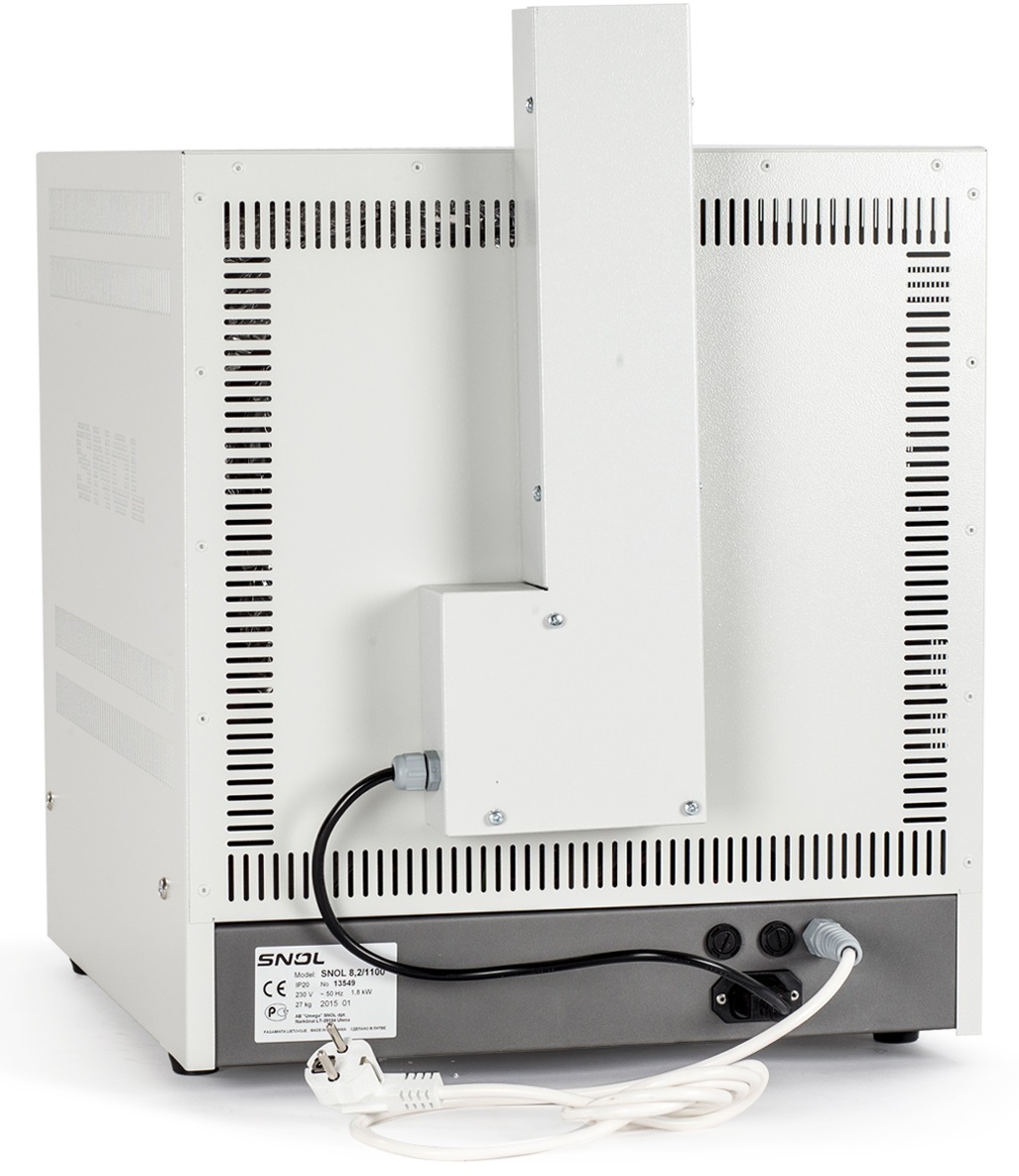 SNOL 8.2/1100 askeovn med vakuumformet keramisk fiberkammer er konstruert for aske- og avbrenningsprosesser opp til 1100 °C. Vifteassistert skorstein gjør det mulig å fjerne røyk fra kammeret under prosessen.
